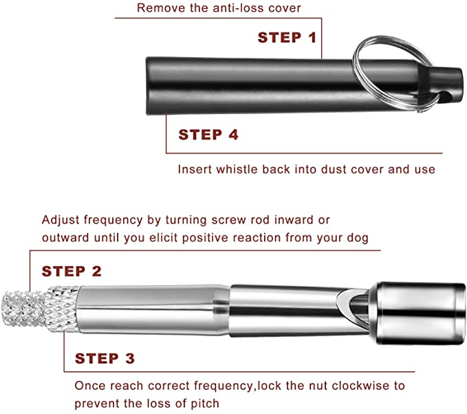 â ™ ¥ Eenvoudig gebruik: Draai de sonische stelschroef los, terwijl u de lucht blaast via de luchtinlaat, draai aan de hendel om de optimale toonhoogte in te stellen. Draai de sonische afstelschroef vast nadat de afstelhendel is gedraaid. Let op de reactie van uw hond op elke instelling totdat uw hond de sterkste reactie vertoont
