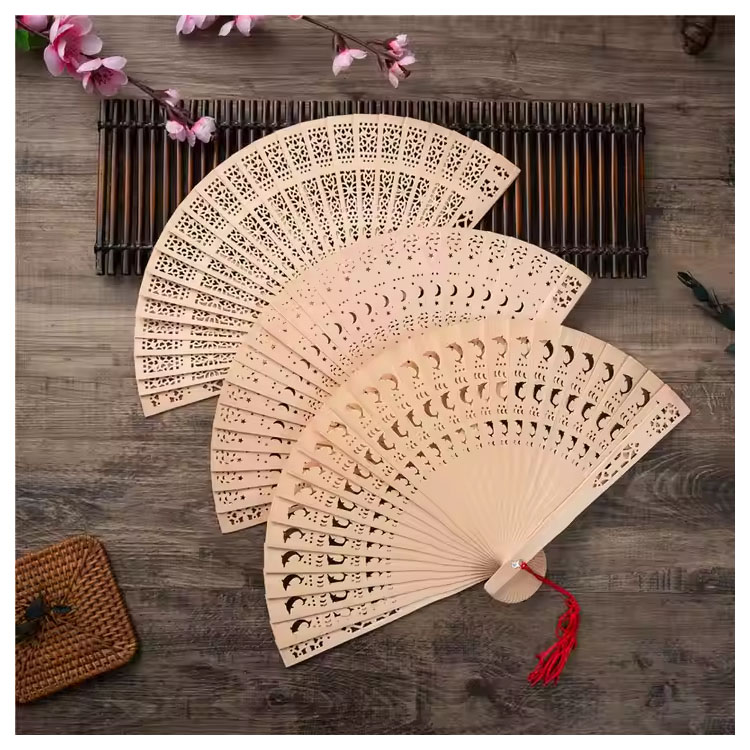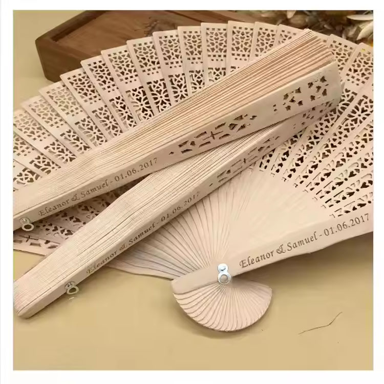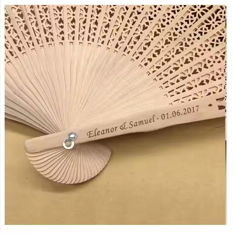 Deze ventilatoren zijn gemaakt van duurzaam bamboe en zijn niet alleen mooi, maar ook milieubewust. Een ideale keuze voor milieubewuste bruiloften, groene promoties of merken die duurzaamheid waarderen.