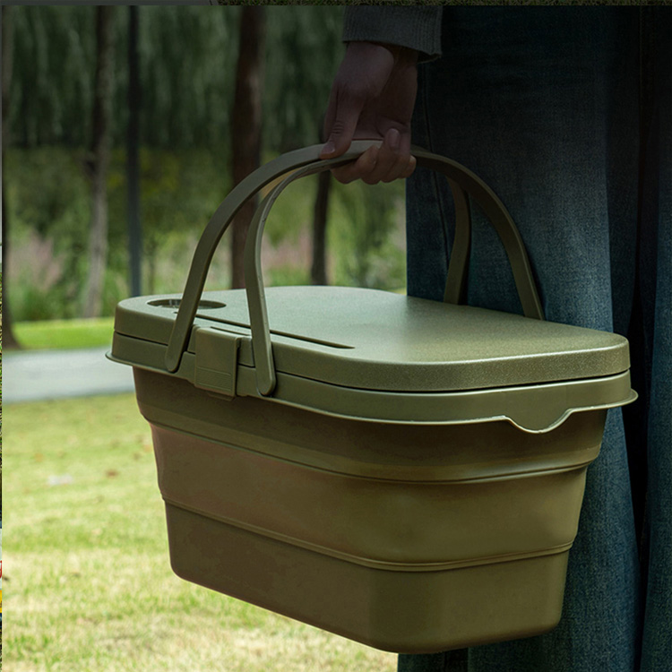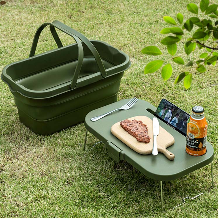 Mand Outdoor Camping Wandelen Picknickopslagcontainer. Uw ultieme draagbare organisatieoplossing voor buitenavonturen. Deze multifunctionele opvouwbare mand combineert een opbergcontainer met een ingebouwd tafeloppervlak. Gemaakt van duurzaam plastic, perfect voor kamperen, wandelen en picknicken.