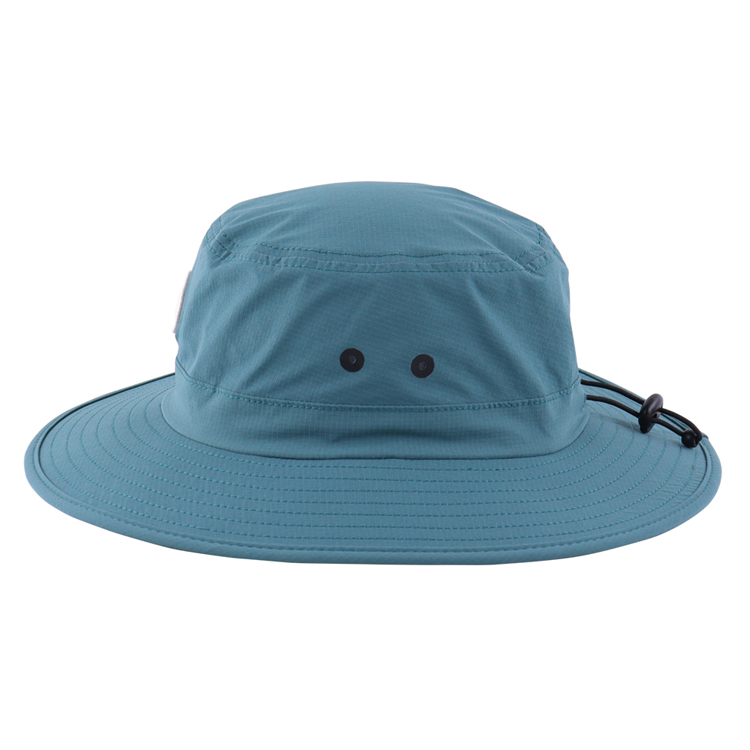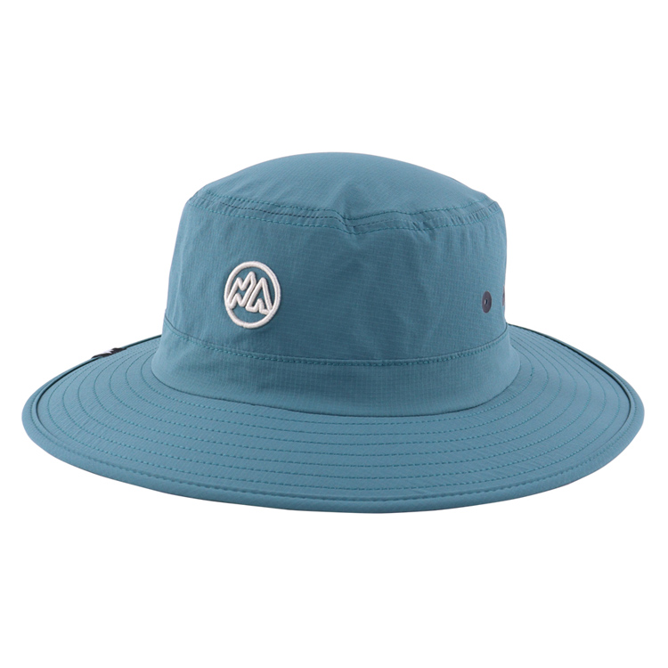 Emmerhoed Sneldrogend, ademend, lichtgewicht buitenpet. Uw premium, aanpasbare oplossing voor zonbescherming. Deze blauwgroene vissershoed is voorzien van sneldrogende, ademende stof voor optimaal zomercomfort. Met op maat geborduurde logo-opties en een verstelbaar trekkoord biedt het stijl en functionaliteit voor alle buitenactiviteiten.