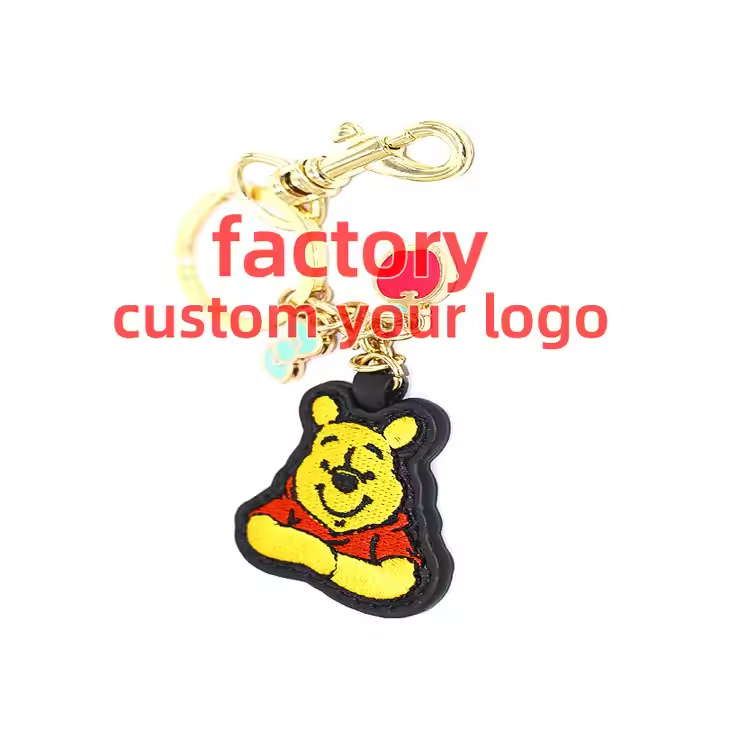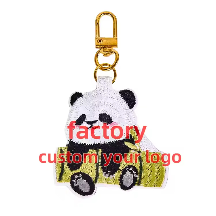 Aangepaste logo borduurwerk sleutelhanger geborduurde sleutelhanger