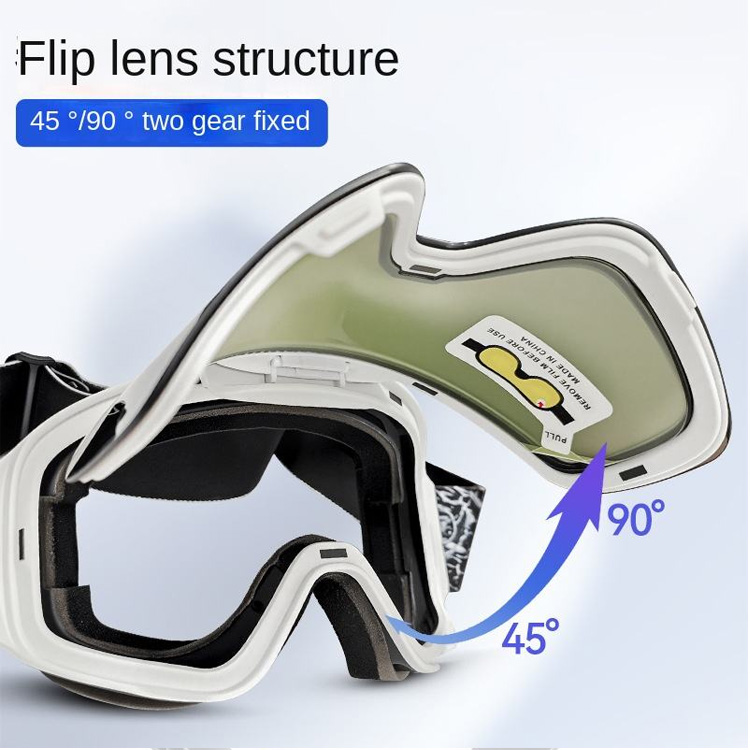Op maat gemaakte unisex stofdichte winddichte UV400 snowboardbril. Uw eersteklas groothandeloplossing voor bergsporten onder alle weersomstandigheden. Deze unisex snowboardbril combineert geavanceerde stof- en winddichte bescherming met UV400-technologie. Met gespiegelde gepolariseerde lenzen en een revolutionair flip-magnetisch systeem, leveren ze ongeëvenaarde visuele helderheid voor skiën en snowboarden.