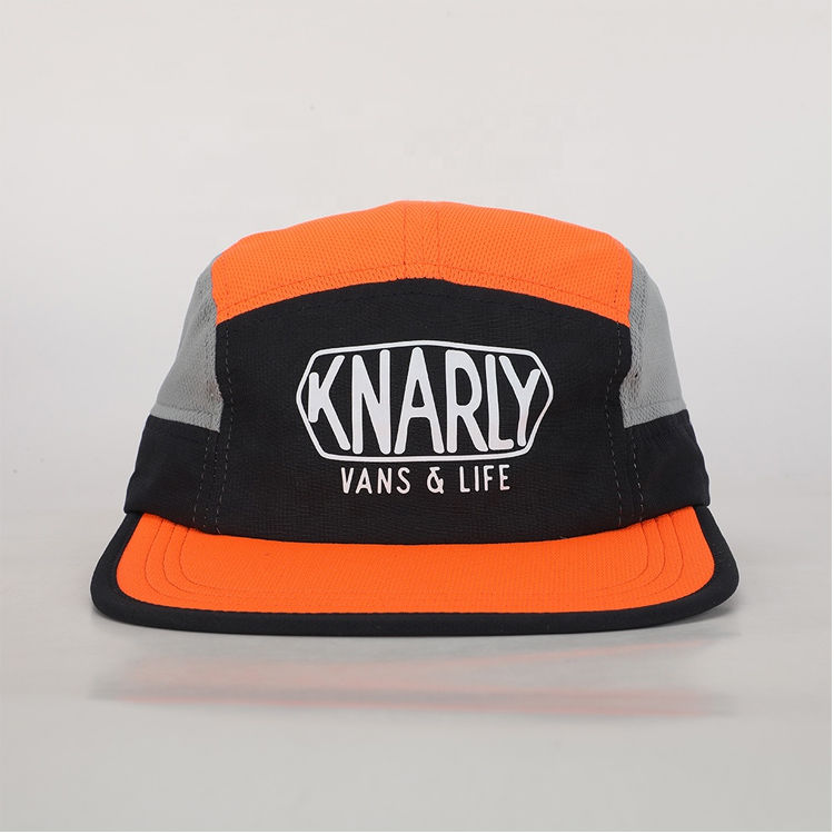 Ontwerp borduurlogo overal bedrukt 5-paneels kamppet. Uw ultieme op maat gemaakte hoofddekseloplossing voor sport- en buitenavonturen. Deze kampeerpet met 5 panelen heeft hoogwaardige borduur- en all-over printopties. Ontworpen als een lichtgewicht hardloop- en kampeerhoed, combineert hij ademend comfort met duurzame prestaties.