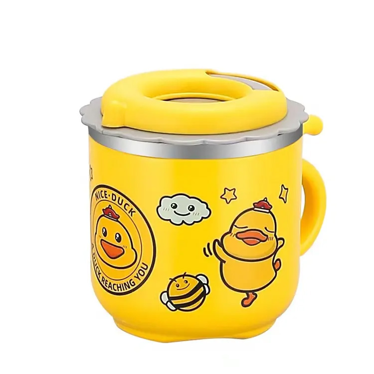 SUS 304 Kinderen Straw schattig gele eend lekbestendig kindbeker. Bekijk eenden roestvrijstalen strawbeker voor kinderen, gemaakt van food-grade SUS 304 materiaal, beschikt over een lekbestendig deksel en gemakkelijke greep, perfect voor peuters en baby's, onbreekbaar en veilig voor dagelijks gebruik thuis of onderweg.