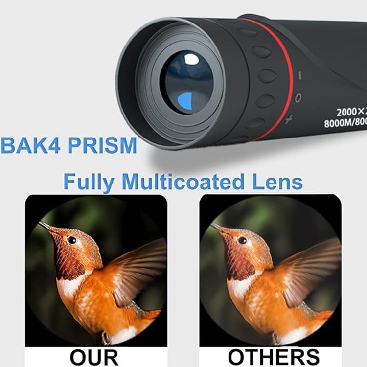 Beschikt over volledig multi-coated optica en een BAK-4-prisma die uitzonderlijke beeldhelderheid, kleurgetrouwheid en lichttransmissie leveren, waardoor verre landschappen en dieren in het wild scherp en helder in beeld worden gebracht.