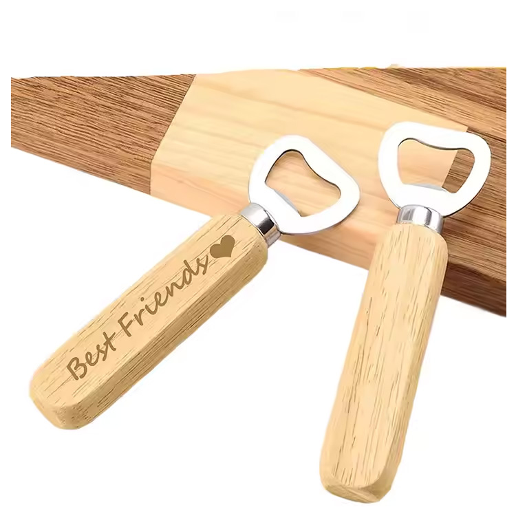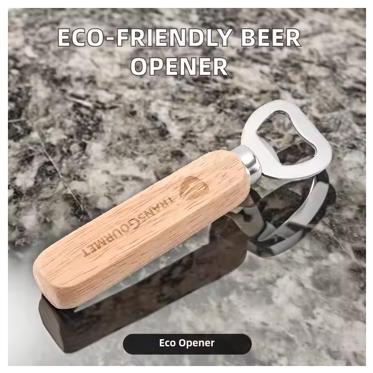 Gemaakt met duurzaam hout en recyclebare materialen, deze opener is een milieubewust alternatief voor plastic opties. Combineer het met een geschenkdoos om een gedenkwaardig, high-end aanwezig te maken.