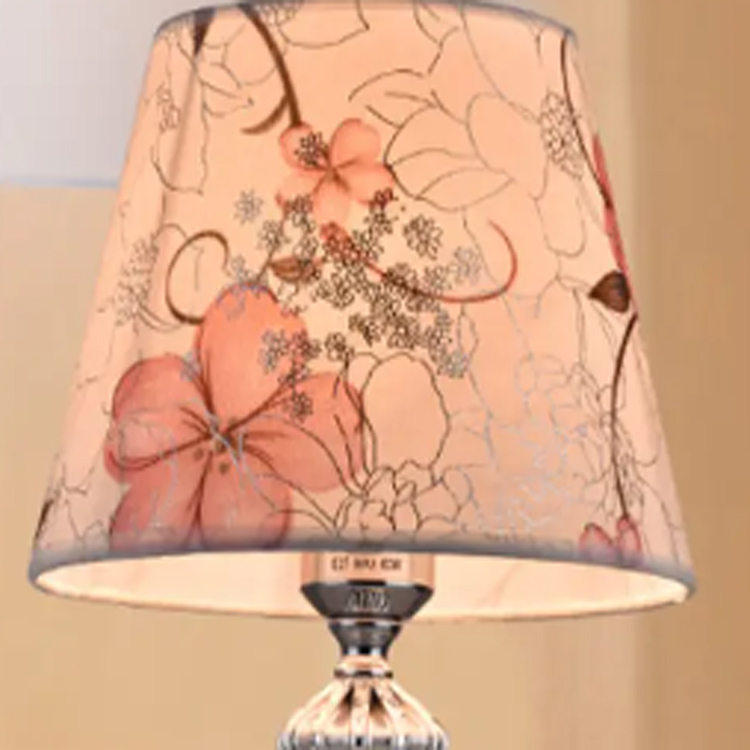 Home Decor Moderne luxe nachtkastje stoffen kap tafellampen. Dit is een klassieke tafellamp met een bloemen lampenkapontwerp. De elegante zilveren basis voegt een vleugje verfijning toe, waardoor het perfect is voor slaapkamers of woonkamers en zorgt voor warme, decoratieve verlichting voor elke ruimte.