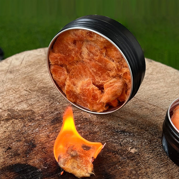 Deze tondel is speciaal samengesteld met waterdichte was en op mineralen gebaseerde vuurmodder en zorgt voor een snelle ontbranding, zelfs bij blootstelling aan regen, sneeuw of hoge luchtvochtigheid, waardoor een betrouwbare brandstart in kritieke overlevingssituaties wordt gegarandeerd.