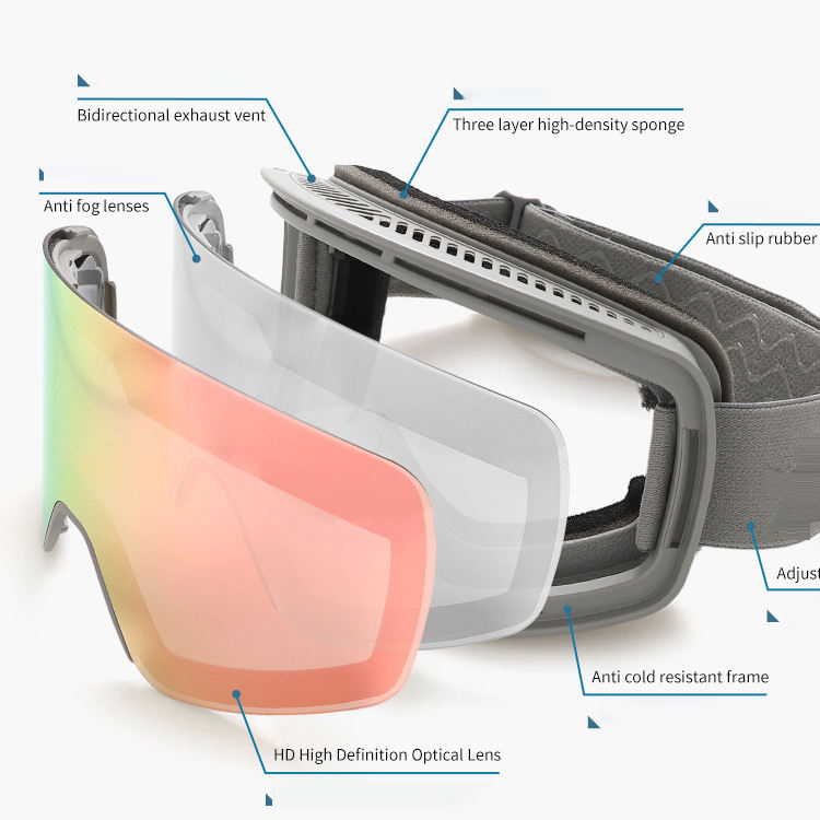 Professionele fabrikant skibril antislip verwisselbaar. Uw ultieme professionele zichtbescherming voor wintersport. Deze door de fabrikant rechtstreekse skibril heeft een antislipontwerp met verwisselbare lensstukken. Het geavanceerde dubbellaagse anticondenssysteem zorgt voor kristalhelder zicht, terwijl de helmcompatibele constructie veilige, comfortabele prestaties levert.